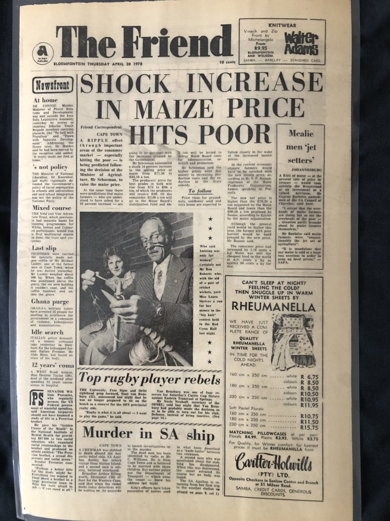 Maar daar was natuurlik ook Engelssprekende joernaliste wat Afrikaans goed bemeester het en hul kant in albei tale gebring het. Een so ‘n joernalis was Maurice Hendler van die Paarl Post, ‘n joernalis wat vir dekades die blad gedra het en nog tyd gevind het om sportberiggies vir Die Burger deur te stuur.
