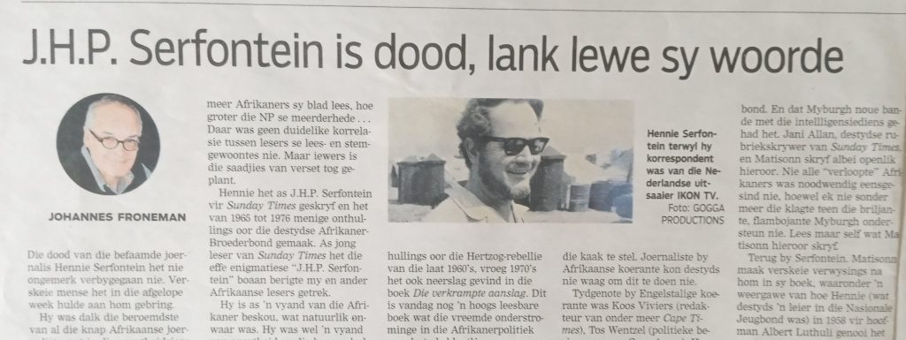 Hennie Serfontein was een van die land se bekendste politieke korrespondente, veral toe hy by die Sunday Times gewerk het en onthullings oor die Afrikanerpolitiek gedoen het.