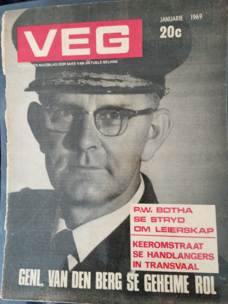 Botha was voorheen aan die SA Akademies vir Kuns en Wetenskap verbonde en het na sy rol by Veg van die politieke toneel verdwyn. Links is ‘n voorblad van een van die uitgawes waarvoor Botha verantwoordelik was. Tog is geglo dat hy veel van sy materiaal van die latere leier van die HNP Jaap Marais gekry het.