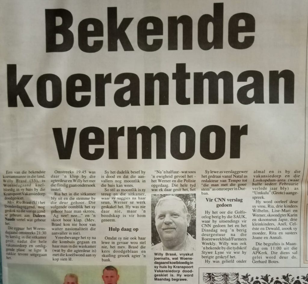 Hy is op 55-jarige leeftyd by sy huis naby Groblersdal vermoor.