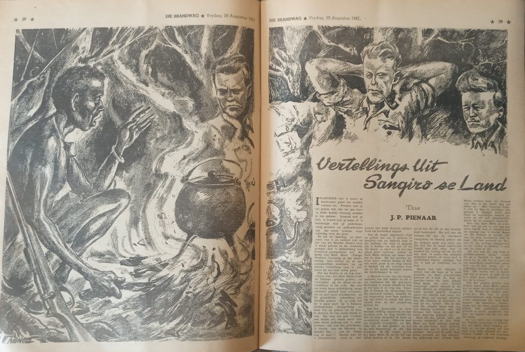 Onder: Een van Ivanoff se illustrasies in Die Brandwag, 1947.