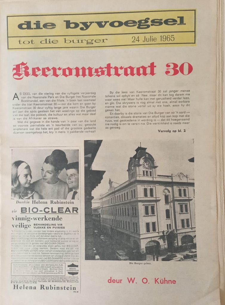 Vroeër het onder J.P. Scannel se redakteurskap Keeromstraat 30. Gedenkbundel vir die vyftigste verjaardag van Die Burger (Nasionale Boekhandel, 1965) verskyn.