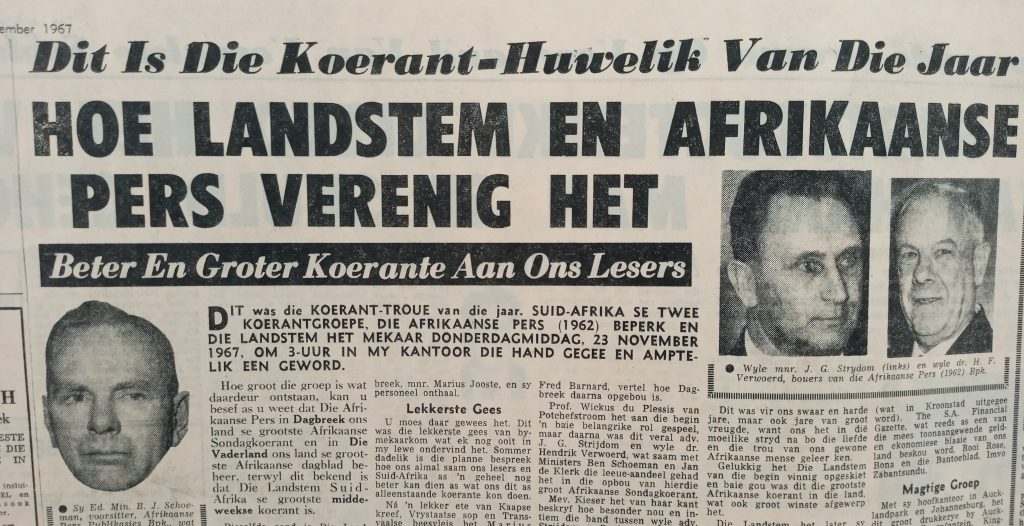 Maar alles kon nogal anders afgeloop het. Met die Graaftrust (van sir De Villiers Graaf se familie) een van die oorspronklike aandeelhouers in Landstem (saam met die stigterredakteur, Piet Beukes) sou inskakeling by die Sunday Times polities meer sin gemaak het. Die Times was immers ‘n ou ondersteuner van die Verenigde Party, waarvan sir De Villiers die leier was. En Piet Beukes was ‘n volgeling van genl. Jan Smuts, ‘n vorige leier van die VP.