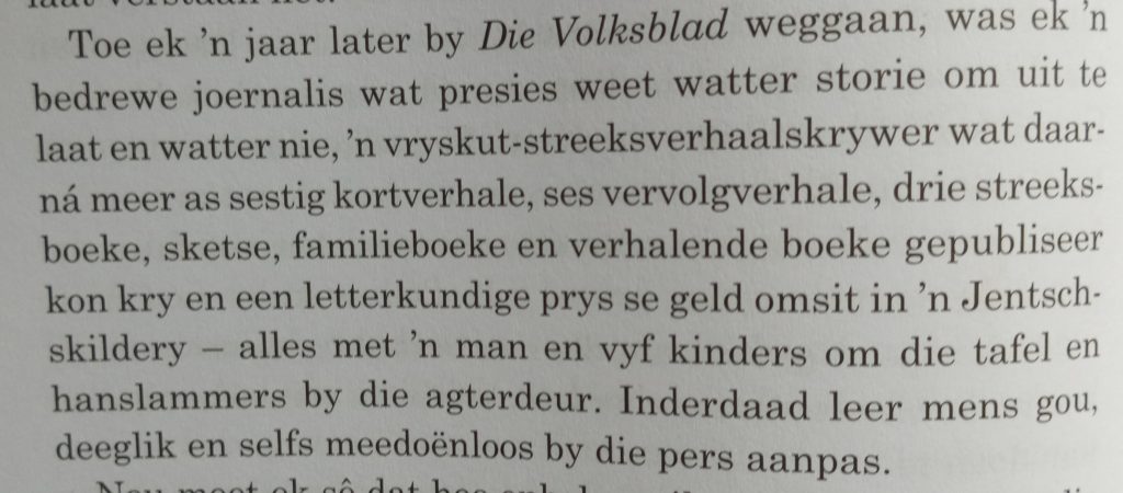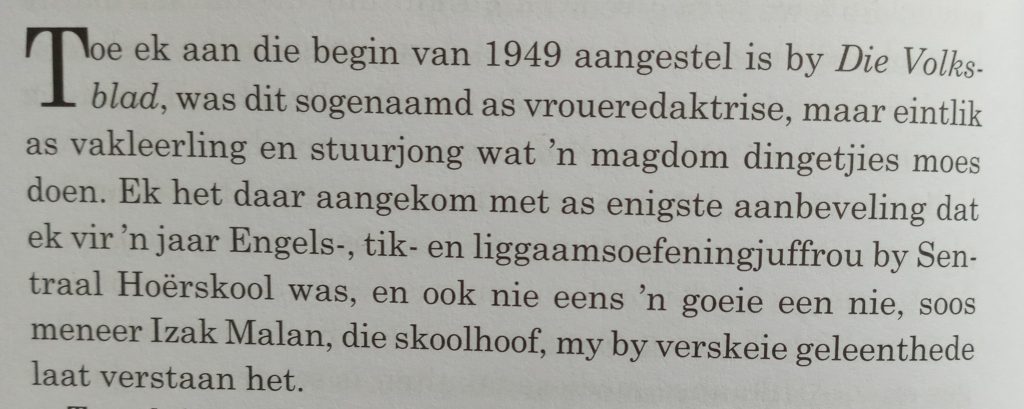 Oor haar aanstelling by Die Volksblad skryf sy:
