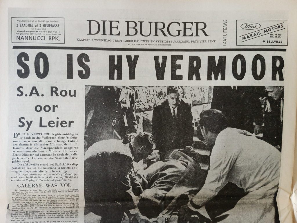 Kyk by https://mediamense.com/groot-nuus-verwoerd/ vir koerantdekking van die moord.