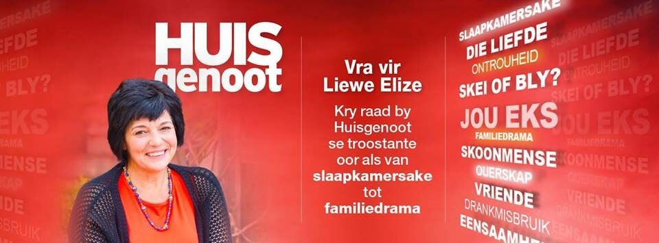 Die briewe, eposse, sms’s en internetnavrae van die Liewe Elize-kolom kyk ek self na. Daar is elke dag ‘n vraag en antwoord op Huisgenoot se webwerf asook dikwels op Netwerk24. Om lesers te beskerm, word die vrae so versorg dat hulle nie onmiddellik herkenbaar is nie, maar daar word ook gesorg dat dit nie generies klink nie.