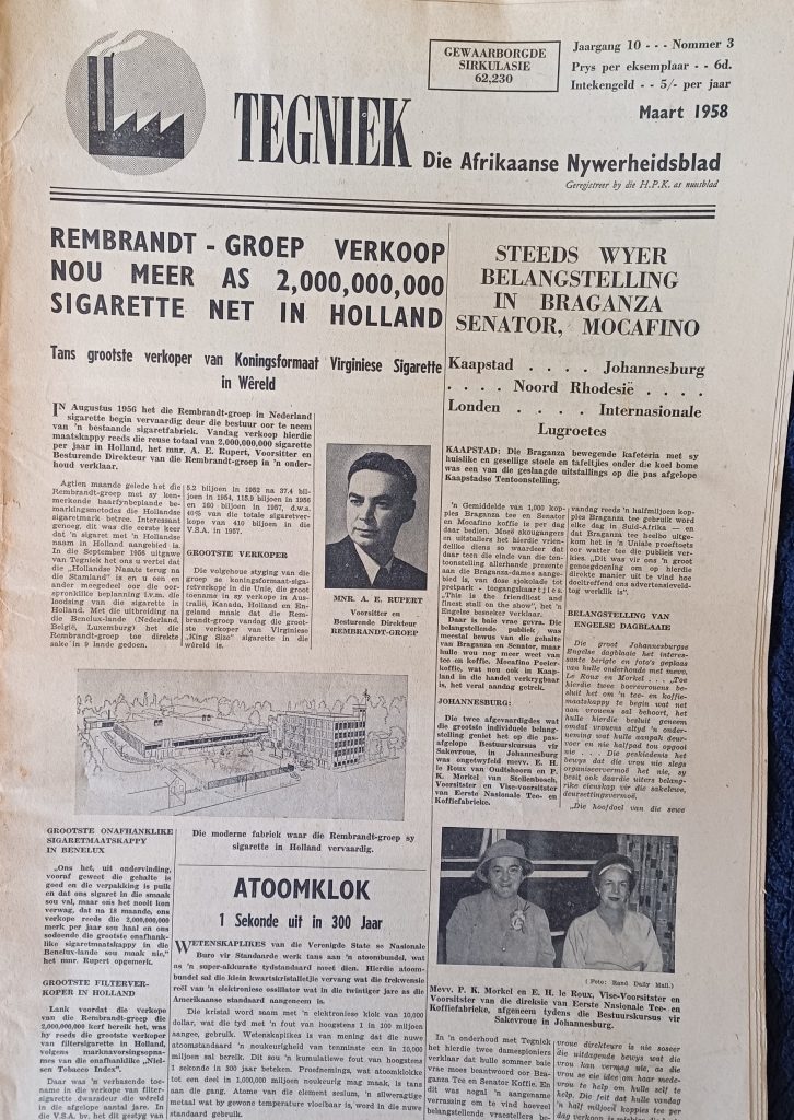 Tegniek in die jaar 1958 toe dit nog uit en uit ‘n produk van dr. Anton Rupert se Rembrandt-groep was.