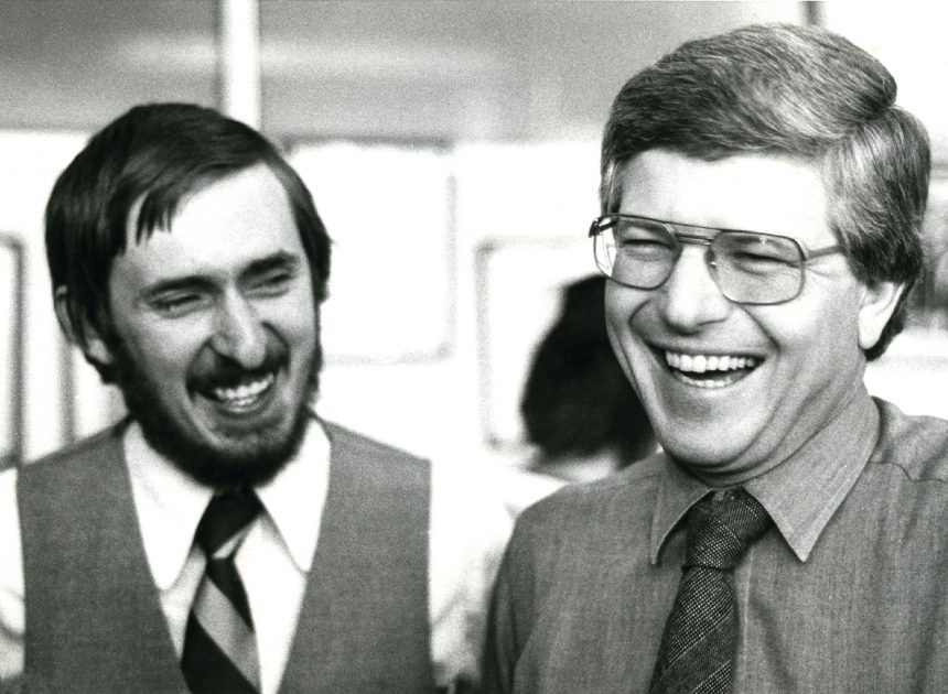 ‘n Jong Pakendorf (regs) saam met ‘n kollega, Dries van Heerden.
