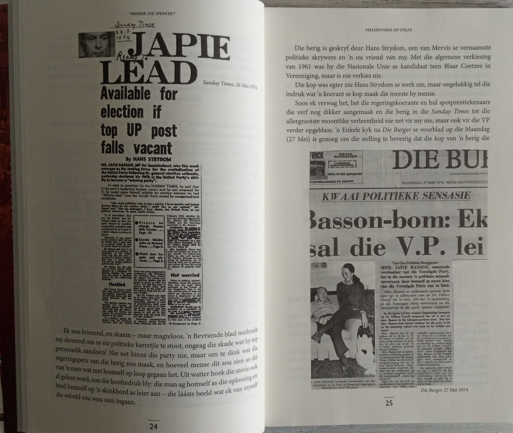 Die Sunday Times se berig was feitelik korrek, maar die kop het gelui: JAPIE READY TO LEAD. Dit het die indruk gewek dat hy homself voorstoot as leier. Basson skryf dat Die Burger die fout vererger het met ‘n opskrif wat lui: Basson-bom: Ek sal die V.P. lei. Hy moes kwaai vure doodgooi. Dit was nie die enigste keer dat hy en Die Burger haaks was nie. Die koerant het Basson deur die jare genadeloos in die verleentheid probeer stel.
