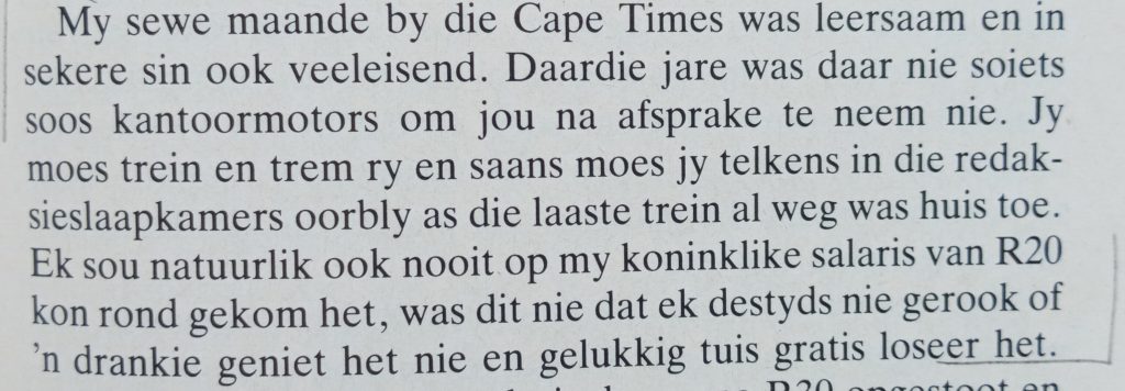 Oor sy tydjie by die Cape Times skryf Meiring: