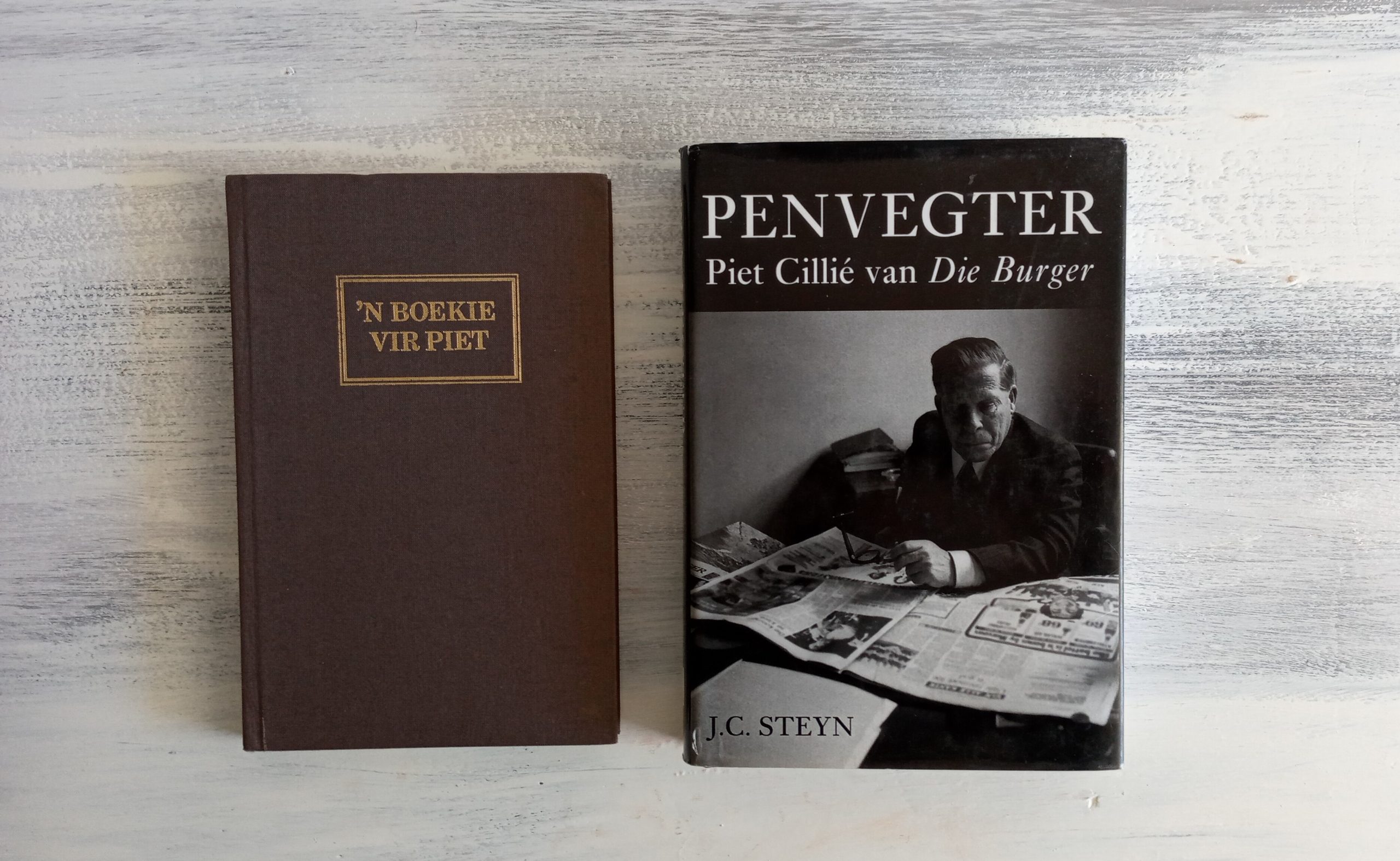Piet Cillié was redakteur van Die Burger, later voorsitter van Nasionale Pers (nou Naspers) en professor in joernalistiek aan die Universiteit van Stellenbosch. Eersgenoemde boek is ‘n buitengewone eerbewys aan hom; die tweede ‘n deeglike biografie deur die befaamde J.C. (Jaap) Steyn. Daarna volg nota’s oor twee boeke met skryfsels deur Cillié asook twee hoofstukke waarin hy bespreek word.
