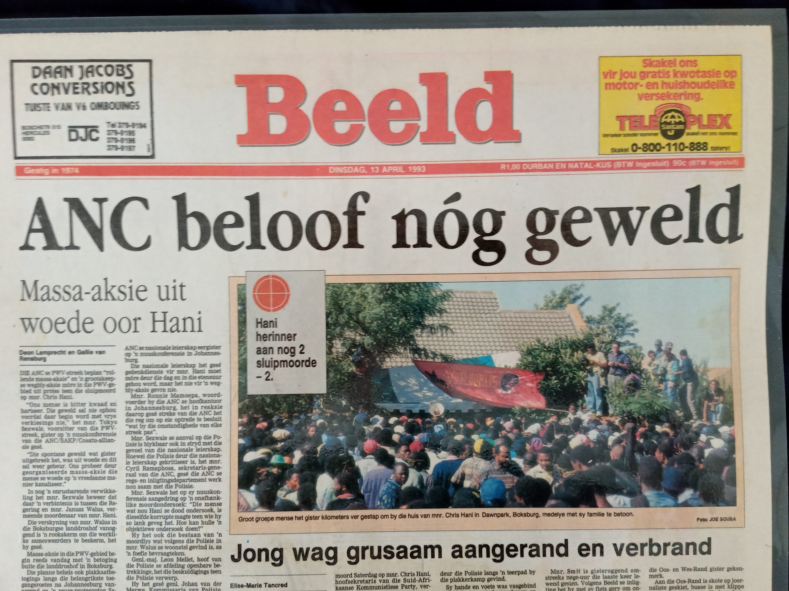 Enkele regses wat teen die voorgestelde nuwe bedeling gekant was, het in April 1993 teruggeslaan deur ‘n belangrike ANC-leier, Chris Hani, te vermoor. Vrees vir ‘n burgeroorlog vlam op, maar danksy onder andere Nelson Mandela se leierskap is die geweld beperk.
