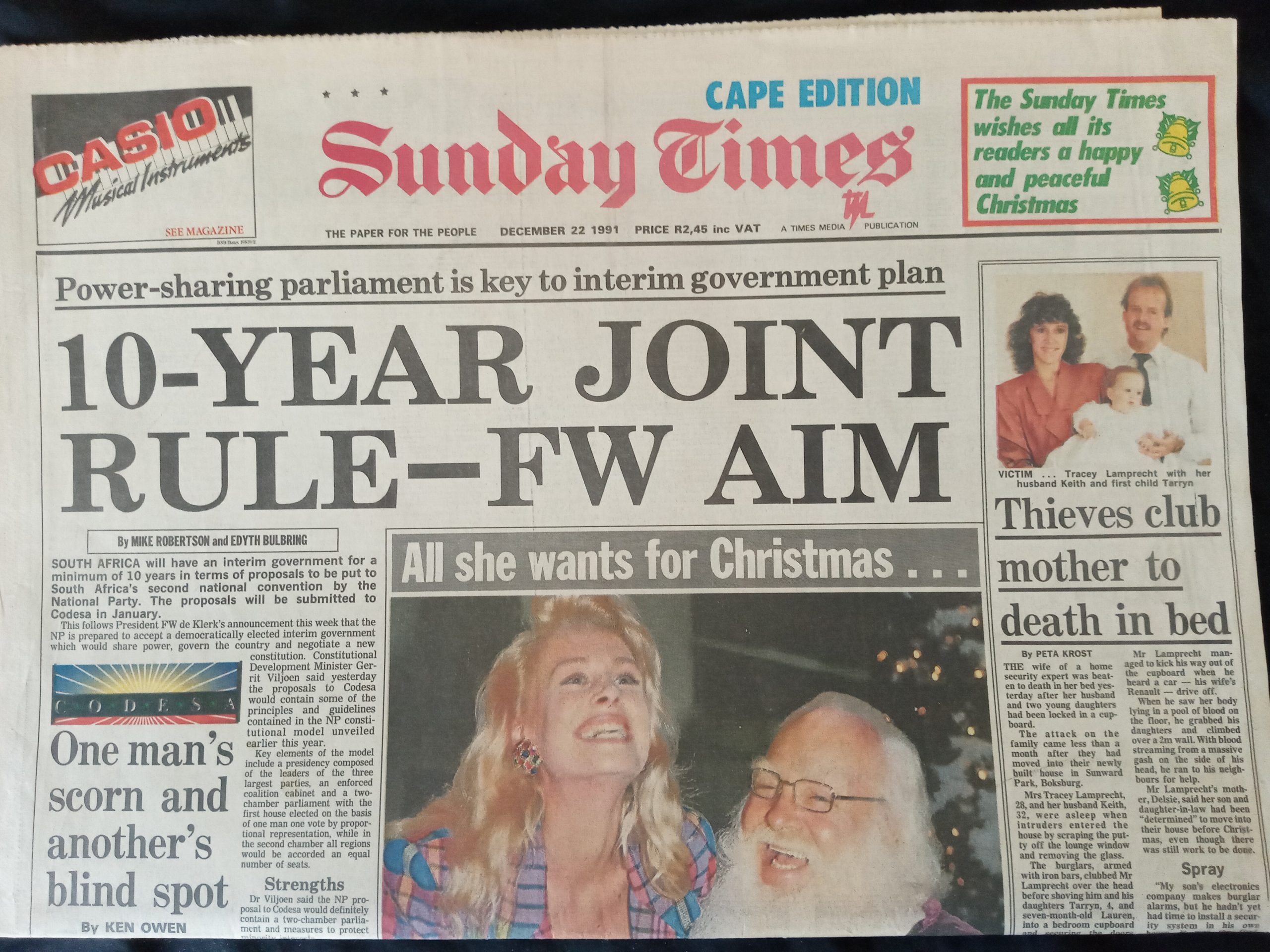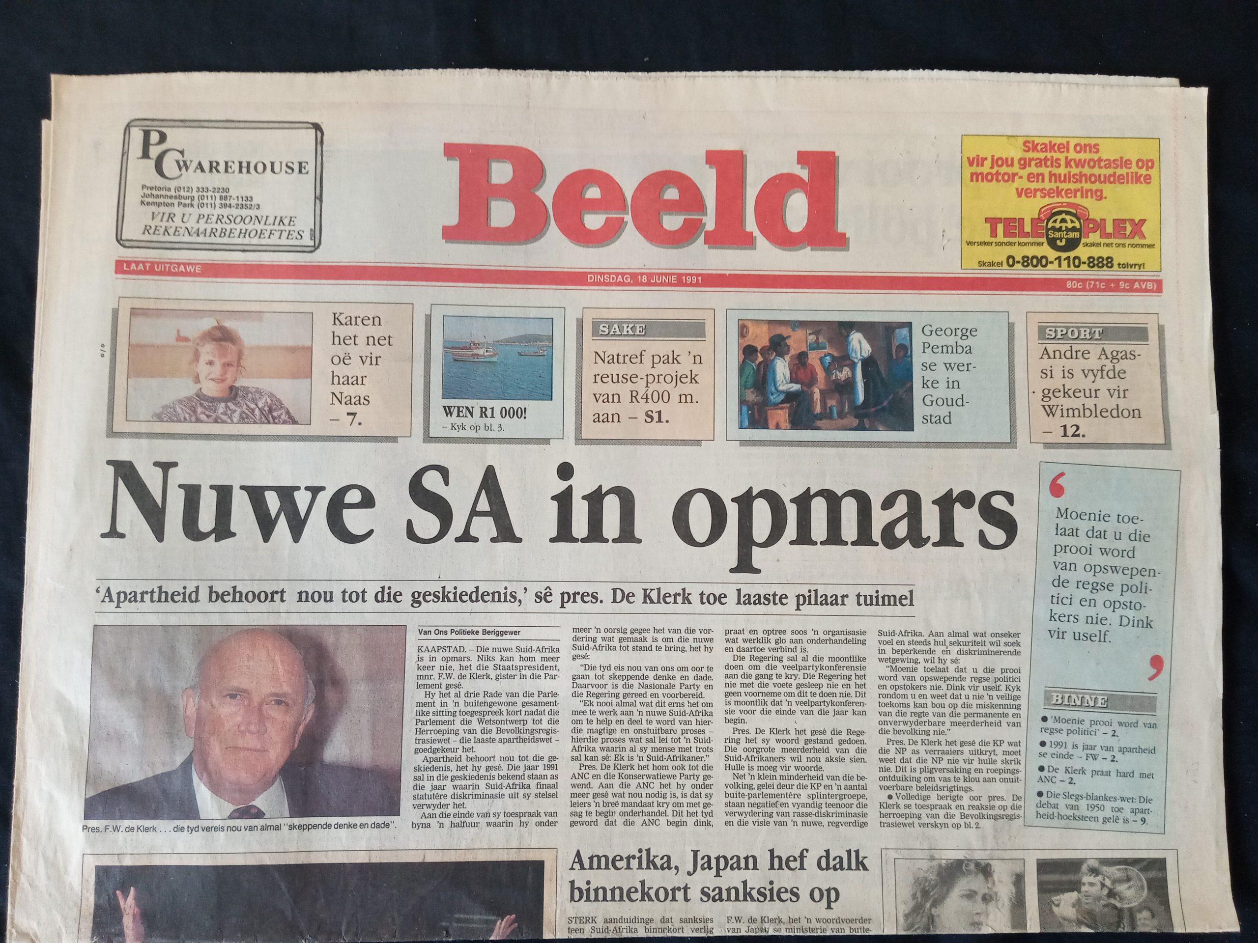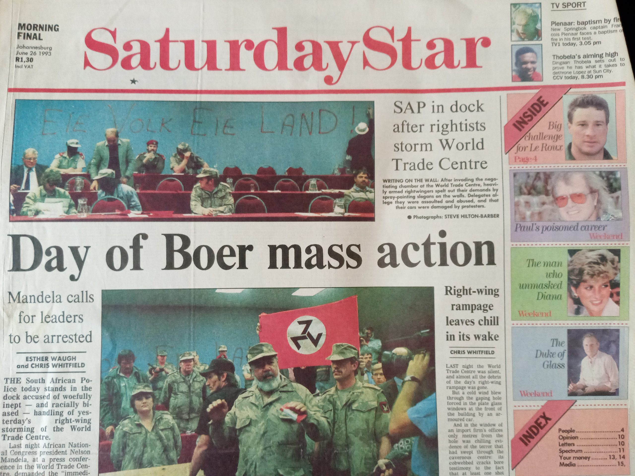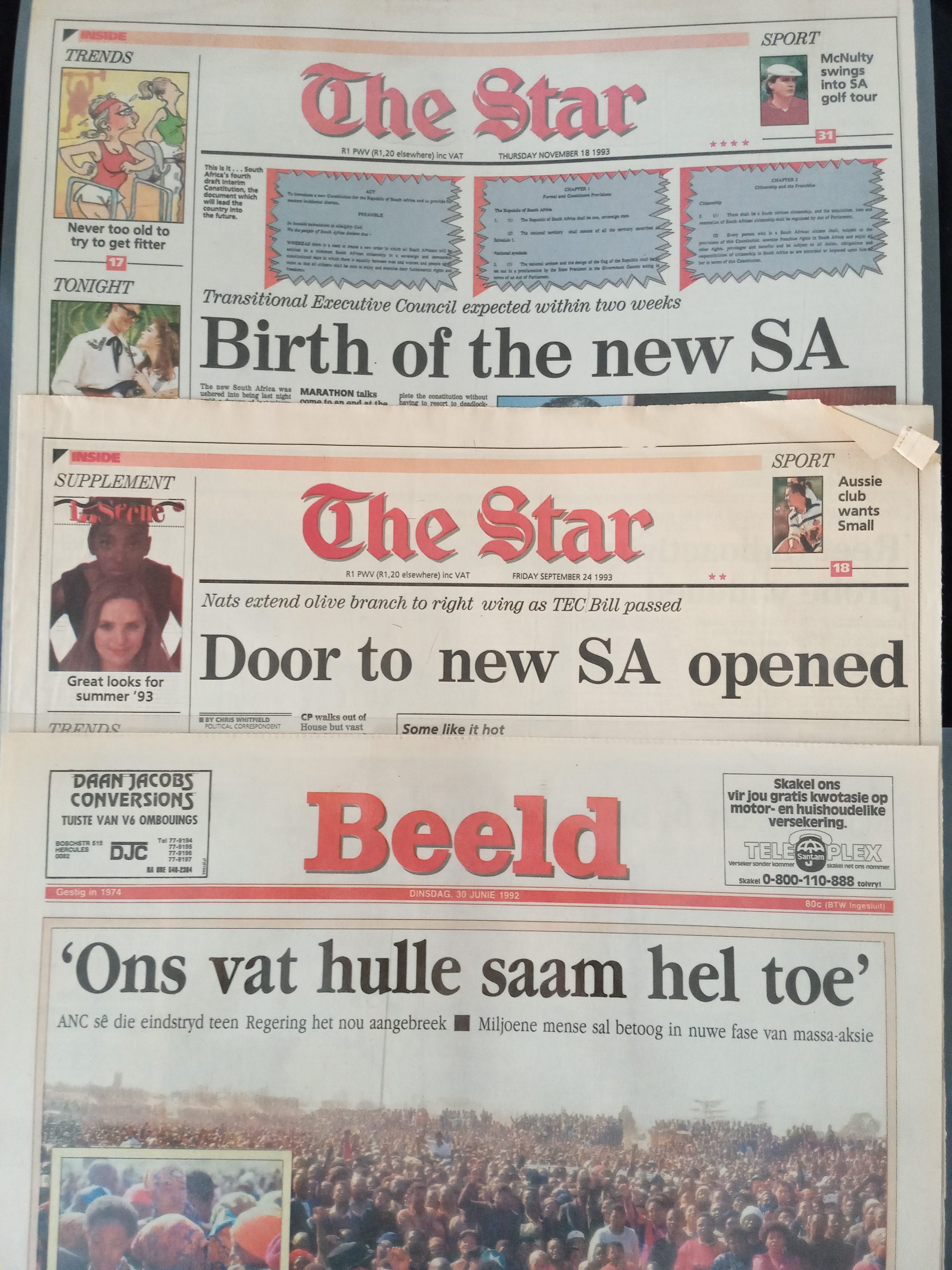 Ander opskrifte dui aan hoe stuk vir stuk weg van apartheid na ‘n nuwe bedeling beweeg word. Maar daar was ook dreigemente van geweld.