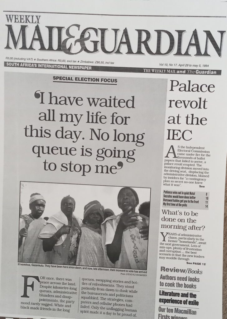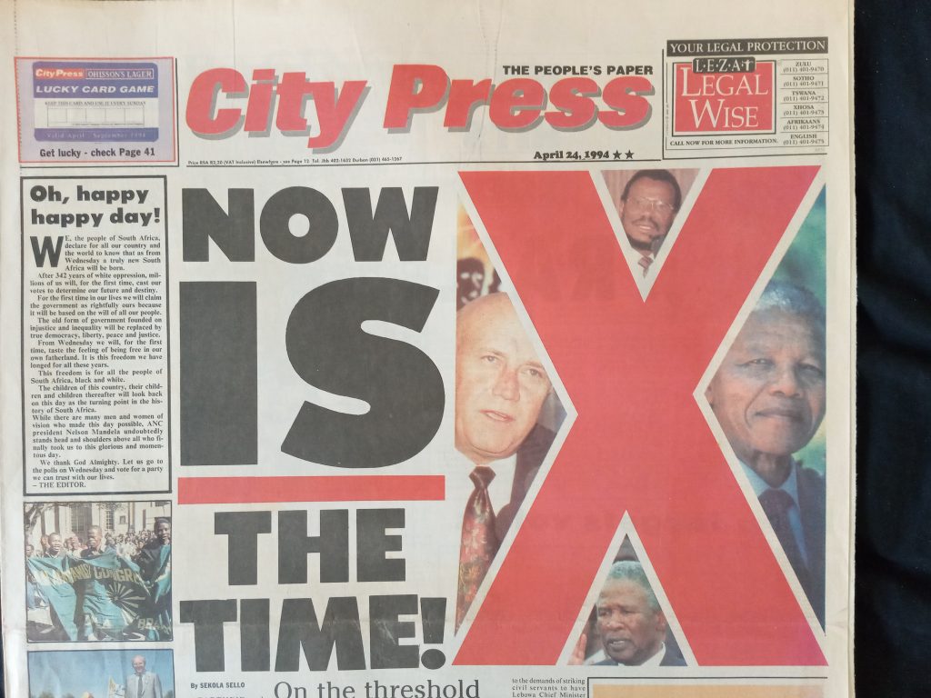 City Press (24 April 1994) volg die daaropvolgende Sondag op met hierdie voorblad: Nou is dit tyd om (uiteindelik) te stem.