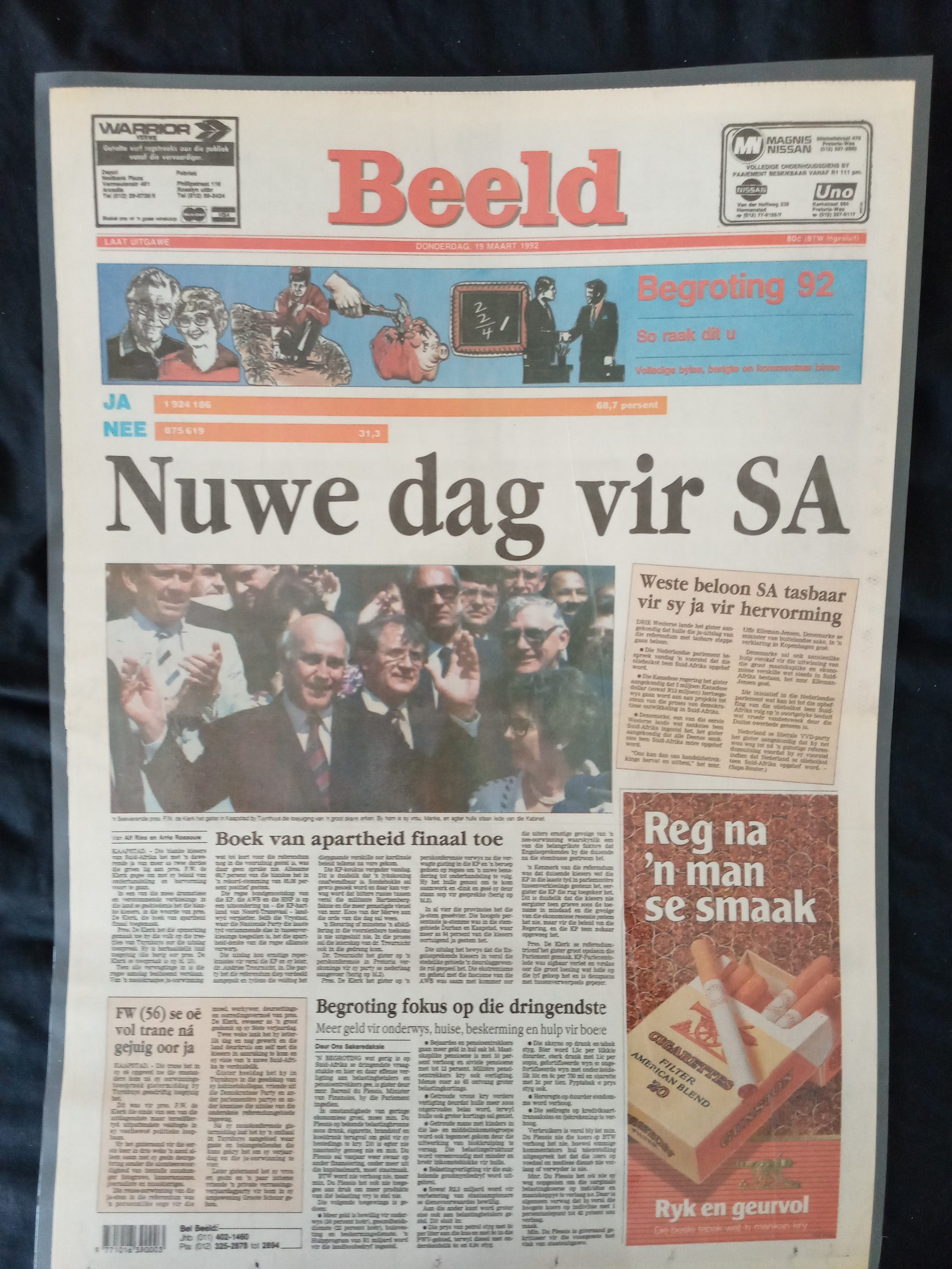 Die ja-stem het ver gewen en daarmee is die groen lig gegee vir verdere onderhandelinge op pad na ‘n nuwe politieke bedeling vir Suid-Afrika waarin alle burgers stemreg het. Die voorgestelde nuwe grondwet is egter nie weer aan die wit kiesers voorgehou nie.