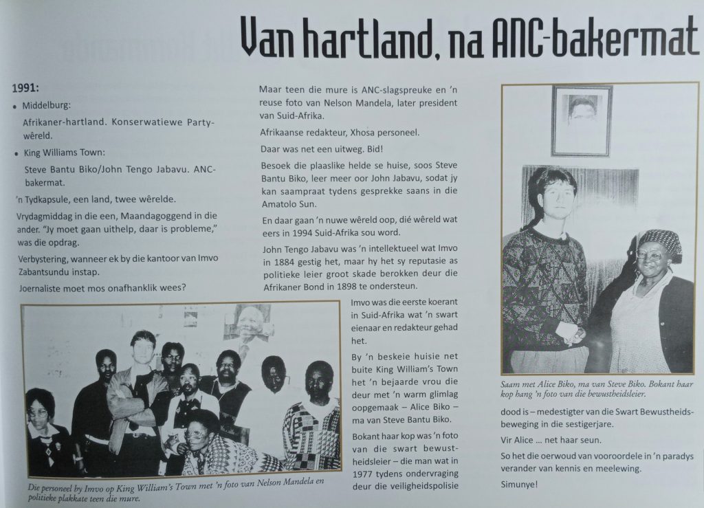 As redakteur binne die Perskorgroep kry hy een dag die opdrag: Gaan help, daar’s probleme by Imvo Zabantsundu op King William’s Town, die koerant wat John Tengo Jabavu in die 19e eeu gestig het en wat, vreemd genoeg, toe reeds lank in wit besit was.