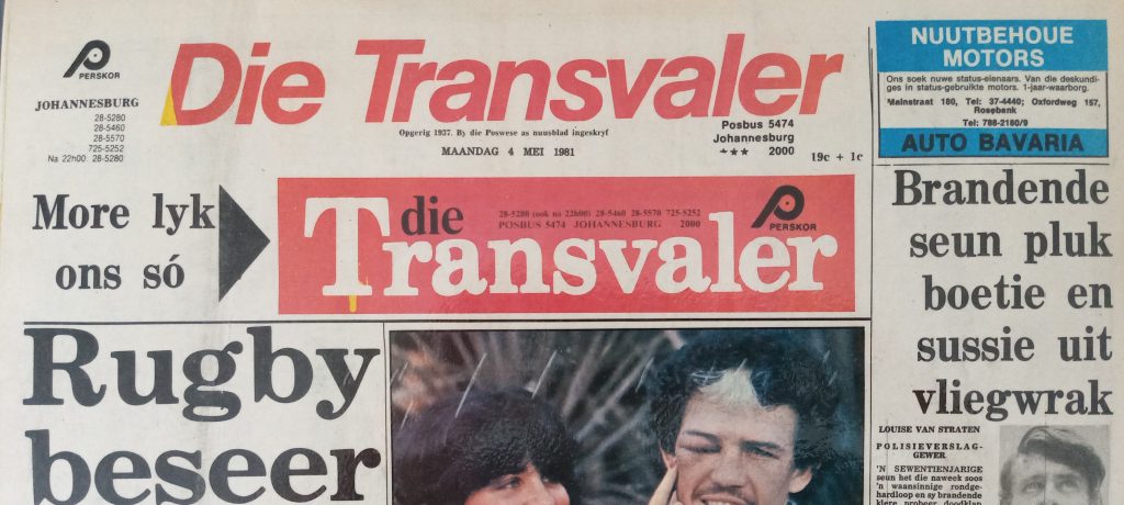 Ek onthou hoe ‘n klomp van ons nagwerkers – die subs en vertalers en hierdie klomp manne uit die settery – snags met ʼn bakkie huis toe geneem is, d.w.s. ons wat iewers naby die koerant gewoon het, maar nie ons eie vervoer twee-uur snags gehad het nie. In die bakkie is altyd geskerts oor die aand wat verby is, en met groot verligting gepraat dat al die saktye gehaal is. Vandag, soveel jaar later, weet ek wat werklik agter daardie laatnag-praatjies geskuil het.