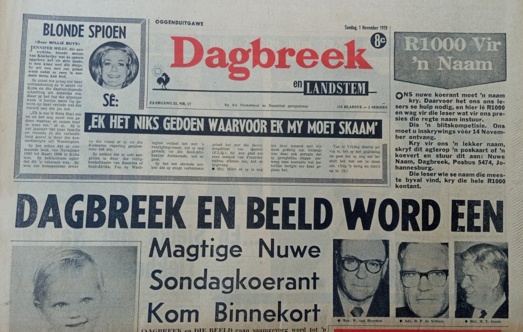 Sondagkoerante is vir lank deur Afrikaners as onaanvaarbaar beskou. Daarom kom Dagbreek en Sondagnuus eers middel 1947 saam-saam op die toneel – ‘n effe morsige sameloop van omstandighede nadat ‘n ontevrede klomp werknemers (insluitende Marius Jooste en Willem van Heerden) uitgestap het by Afrikaanse Pers, uitgewer van Die Vaderland, waar Van Heerden redakteur was.