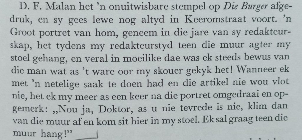 Maar sterk redakteurs het op Malan gevolg — soms met idees wat effe van die NP-regering s’n afgewyk het. Maar nie te veel nie.