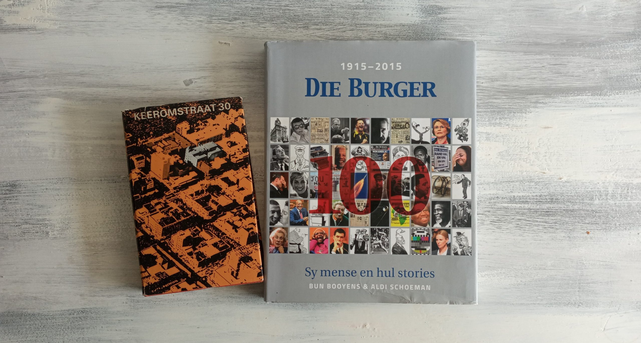 Hierdie twee boeke vertel elk op eie wyse die storie van Die Burger. Die meer beskeie Keeromstraat 30, wat net die eerste 50 jaar dek, dateer uit 1965, en in 2015 het die formidabele 1915-2015 Die Burger 100 verskyn. Albei is juwele.