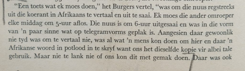 Die radiopionier M.P.O Burgers vertel van ‘n toets wat hy moes aflê om as Afrikaanse omroeper te kwalifiseer: