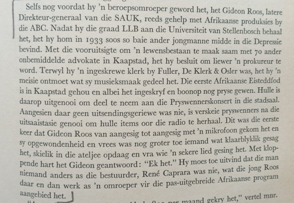 Gideon Roos, een van die grootste Afrikaanse uitsaaier ooit, het deur sy sang in die uitsaaiwese beland.
